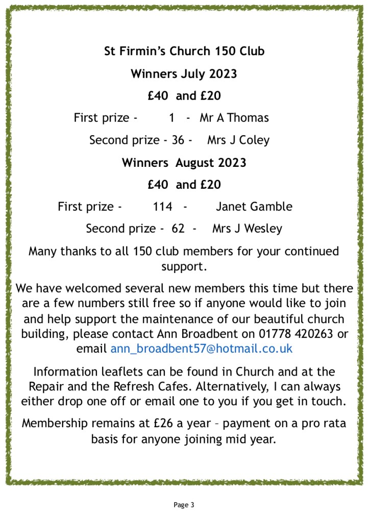 Alternatively please use Paypal – stfirminchurchwarden@gmail.com – you do not have to have an account to send in this way. Thank you.